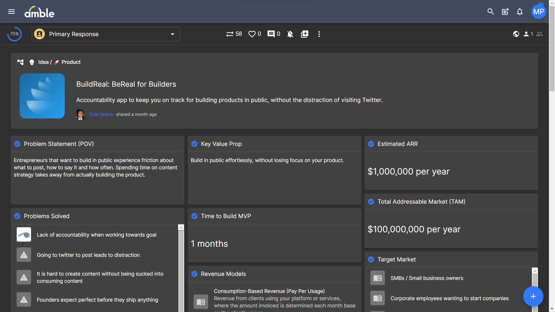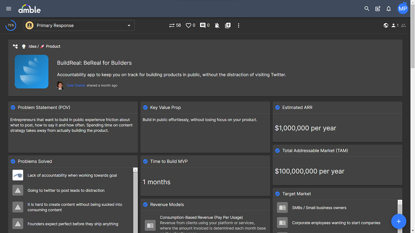 Leveraging Amble's knowledge blocks ensures your product is solving a real problem for a specific group of people, and you have a plan in place for selling to them.